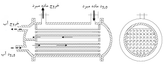 - اواپراتور پوسته لوله : در این نوع اواپراتور دسته ای از لوله های مسی در یک پوسته به شکل مخزنی استوانه ای قرار گرفته اند . در اواپراتور پوسته لوله معمولاً دو جریان در مجاور هم قرار دارند به این صورت که از یک سمت پوسته سیال وارد پوسته می شود و از مجاور لوله ها عبور کرده و پس از تبادل حرارتی با مبرد از سمت دیگر پوسته خارج می شود و مبرد از یک سمت به داخل لوله ها وارد شده و با عبور کردن از داخل لوله ها و جذب گرمای سیال از سمت دیگر لوله ها خارج می شود .