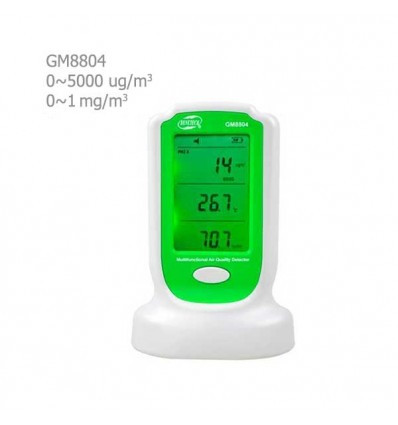 مولتی فانکشن هوای محیطی بنتک مدل GM8804، توانایی اندازه گیری غلظت ذرات معلق در هوا، غلظت فرمالدهید، دما و رطوبت محیطی را داراست.
