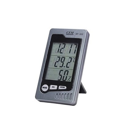 رطوبت سنج دیجیتال سی ای ام (CEM) مدل DT322، یک رطوبت سنج و دماسنج دیجیتال رومیزی یا دیواری است که توانایی اندازه گیری دما و رطوبت را بصورت همزمان برروی نمایشگر و آنلاین دارد. این ترموهیگرومتر دارای کیفیت خوب و قیمت مقرون بصرفه است.