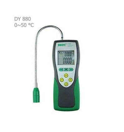 گازسنج یا نشتی یاب گاز دویی (DOUYI) مدل DY880، یک نشتی یاب گاز قابل اشتعال است که قابلیت تشخیص گاز طبیعی، منواکسید کربن، دود، بتان، پروپان، متان، اتانول، آمونیاک، بنزین و دیگر گازهای قابل اشتعال را بوسیله آلارم و نمایش بصورت عدد برروی صفحه و چراغ LED نمایش دارد.