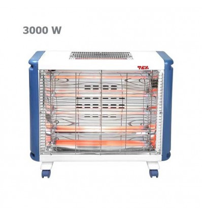 بخاری برقی تابشی برفاب مدل QH-3000 از نوع فن دار بوده و برای استفاده در مناطقی که افت فشار گاز وجود دارد و در نتیجه استفاده از وسایل گرمایشی گازسوز میسر نیست، مناسب می باشد. بخاری برقی برفاب مدل QH-3000 با دارا بودن توان حرارتی 3000 وات، براحتی می تواند به اتاق های کوچک گرما ببخشد؛ ضمن اینکه مصرف پایینی دارد و با توجه به هزینه های روزافزون مصرف سوخت های فسیلی، گزینه مناسبی برای استفاده در منازل و ادارات محسوب می شود. در این بخاری همانطور که از نام آن پیداست، گرمای ایجاد شده توسط تابش المنت (امواج فروسرخ) دستگاه تامین میگردد.