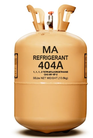 گاز R404 از ترکیب شیمیایی هیدروکلرو فلوروکربن (HCFC) تشکیل شده است که در دمای معمولی اتاق، یک مبرد بی رنگ و غیرسمی و غیر قابل اشتعال است؛ با این حال در فشار ۶۰ psig و وقتی که با هوا مخلوط شود در دمای محیط قابل اشتعال است. این مبرد با روغن های مینرال و آلکیل بنزن سازگار است.
