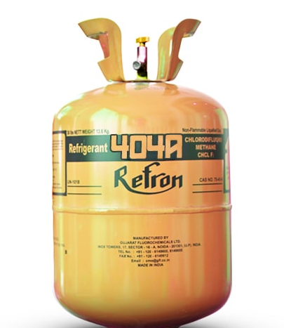 گاز r404A رفرون refron یک مخلوط بدون بو از دسته گازهای HFC است. این مبرد ترکیبی از سه گاز R134a ،R143A و R125 با درصدهای متفاوت بوده که به عنوان جایگزین برخی گازهای فریونی مانند R502 و گاز R22 استفاده میشود. با وجود این که گاز ۴۰۴ رفرون مخرب لایهی اوزون نیست اما به دلیل شاخص گرمایی بالایی که دارد در دراز مدت باعث افزایش گرمایش جهانی میشود. گاز هندی R404A در دمای محیط و فشار جو قابل اشتعال نیست اما اگر پرکردن گاز R404A با رعایت نکات ایمنی انجام نشود، ایجاد یک ترکیب نادرست باعث آسیب به سیستمها میشود. همچنین این بدین معناست که گاز R404a وقتی با مواد مخلوط با هوا تحت فشار قرار بگیرد و در معرض منابع احتراق باشد، قابل احتراق است.